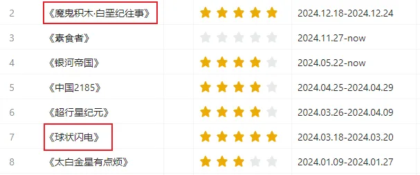 在看的小说中,要是需要排序的话,首先就是刘慈欣的《球状闪电》人物刻画太细腻了,也太浪漫了,其次就是《魔鬼积木》里面的故事叙事有点网飞剧的赶脚了。24 年度其他的没在看了,还是应该多看看文化历史、社会科学、政治经济有关的书籍,这方面看的有点少了。
